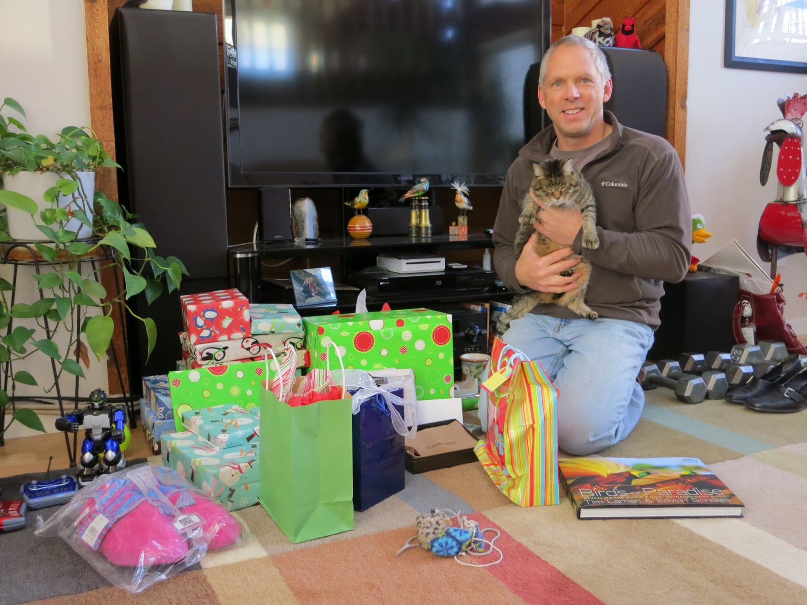 I think Christmas is made for cats. SO many boxes to investigate. Here Pente is scratching inside of this box. Weirdo!